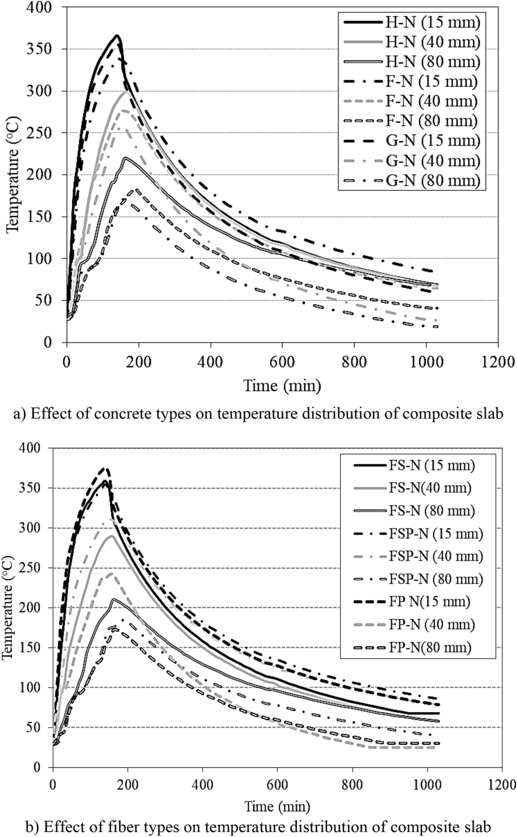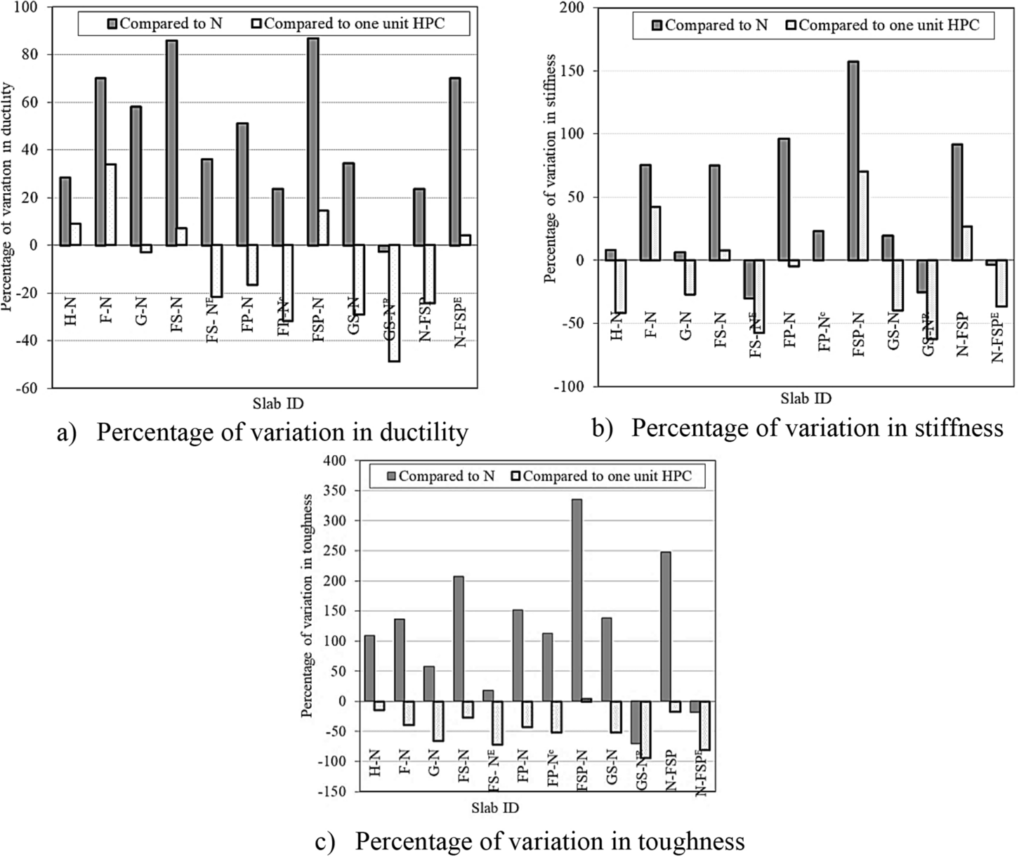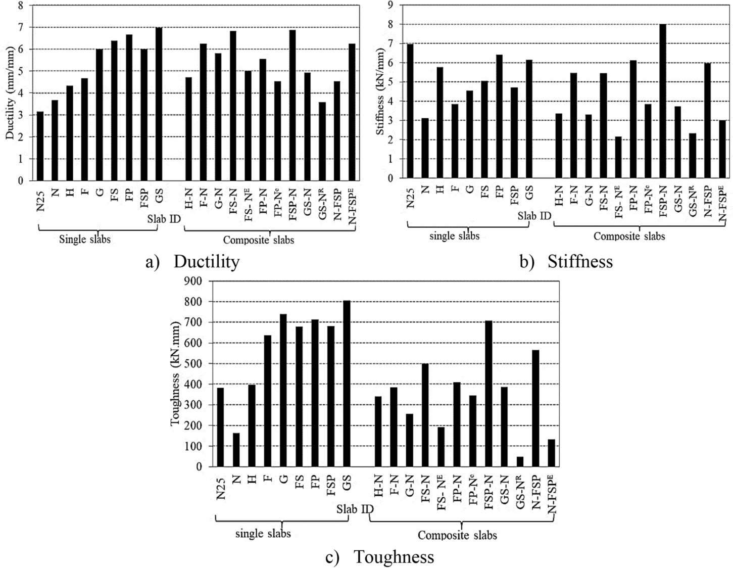 All composite RC slabs showed a decrease in flexural properties after exposure to elevated temperature compared to the single slab cast with the same types of HPC, except the slab specimen cast with hybrid fibers, which showed a significant improvement.