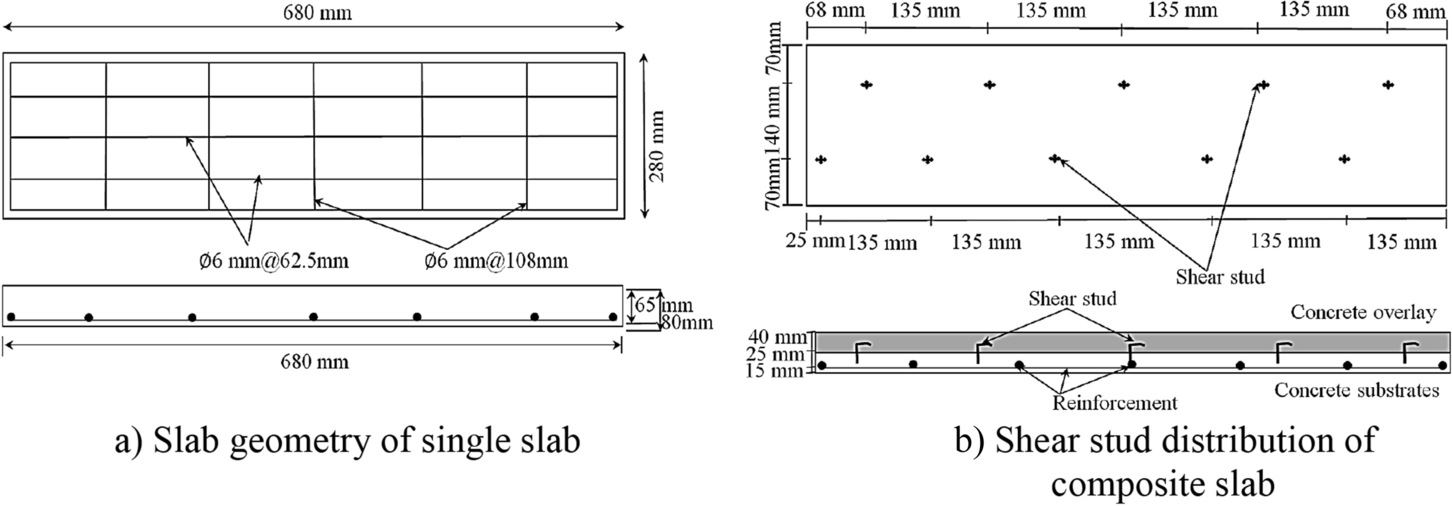 In the fire case, Xu et al. [41] conducted an experimental study to investigate the fire resistance performance of two-way restrained precast concrete composite slabs. The study found that the shear stud at the interface between the precast and the in-situ concrete layers is sufficient to ensure composite action in fire. Ahmad et al. [42] presented an experimental investigation on the shear transfer strength of uncracked concrete interfaces after exposure to different temperatures. It was shown that the elevated temperature resulted in a reduction of the shear transfer strength by 48.17% after exposure to a temperature of 750°C. While specimens without transverse reinforcement displayed the maximum loss in shear transfer strength, the increase in transverse reinforcement ratio led to a decrease in the loss in shear transfer strength. Moreover, Xiao et al. [43] observed that the concrete with higher compressive strength showed more deterioration in shear transfer strength. On the other hand, epoxy resin has a negative effect under fire because it reaches the glass transition temperature (Tg). The glass transition temperature is the temperature at which the polymer goes from a hard, glass-like state to a rubber-like state, as mentioned by Blontrock et al. [44].