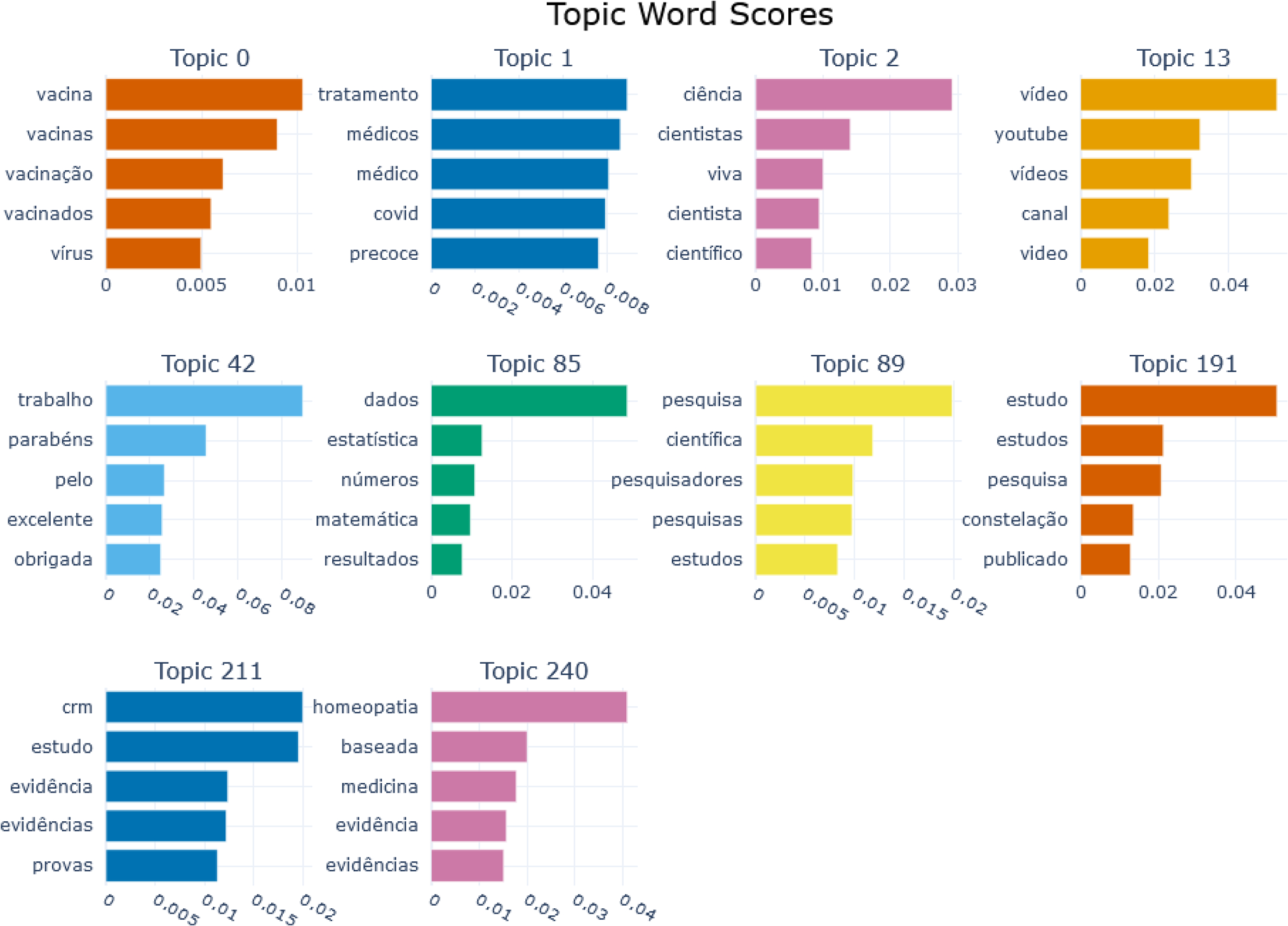 In a previous attempt to focus solely on tweets reacting to science communication, LDA modeling found only few comments (Lima 2023).