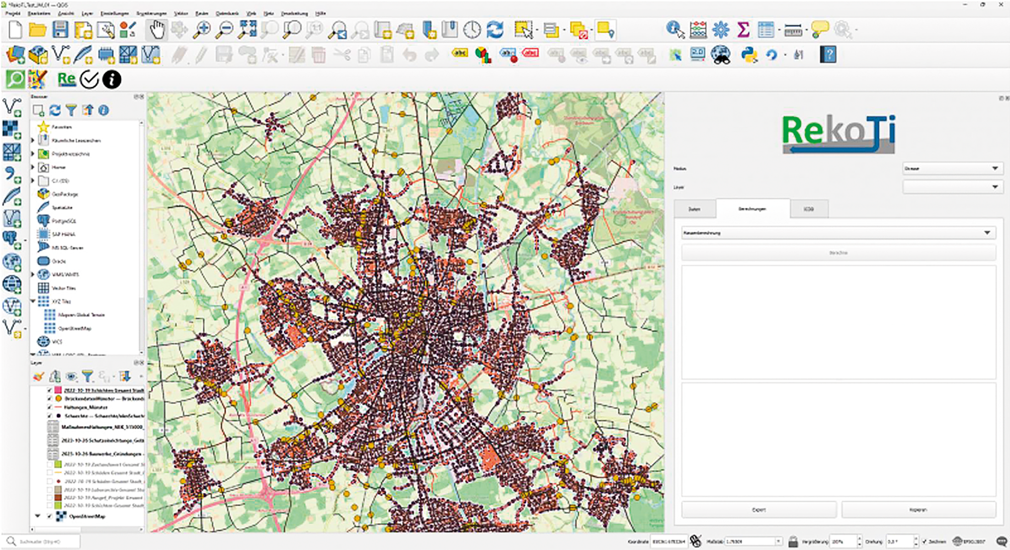 Im RekoTi-Projekt wurden digitale Konzepte und Dienste entwickelt, um die Ressourceneffizienz und Nachhaltigkeit kommunaler Infrastrukturprojekte zu optimieren. Dies umfasste den Einsatz fortschrittlicher Technologien wie BIM, GIS, KI, IoT-Sensoren und datengetriebenen Analysen zur Planung, Überwachung und Optimierung von Bauprozessen. Mithilfe der RekoTi-Toolbox wurden Ansätze zur Identifikation und Analyse des anthropogenen Materiallagers sowie zur Optimierung von Stoffströmen entwickelt, wobei ein verlustfreier Datenaustausch zwischen Objektebene (BIM) und Netzebene (GIS) für den gesamten Lebenszyklus eines Bauwerks zentral war.