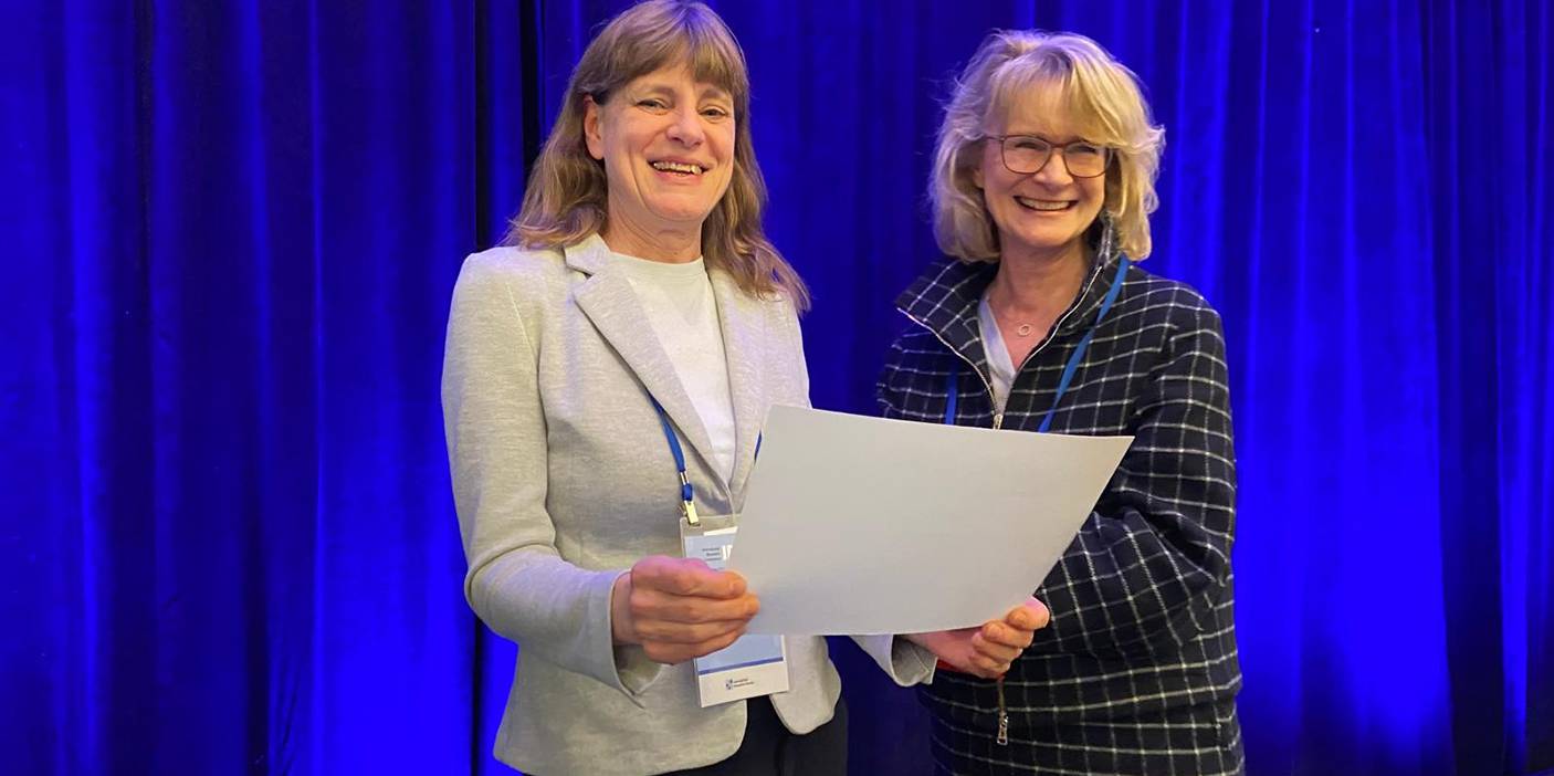 Das informelle Netzwerk der Statistik Fakultät: Die Vorsitzende der International Biometric Society Iris Pigeot (rechts) (ehemals Universität Dortmund) überreicht der scheidenden Ko-Editorin von Biometrics, Katja Ickstadt (links) (TU Dortmund) in Atlanta (USA) eine Ehrenurkunde. (Quelle: https://statistik.tu-dortmund.de/nachrichtendetail/prof-dr-katja-ickstadt-auf-ibc-2024-geehrt-48611 Zugriff 09.04.2025)