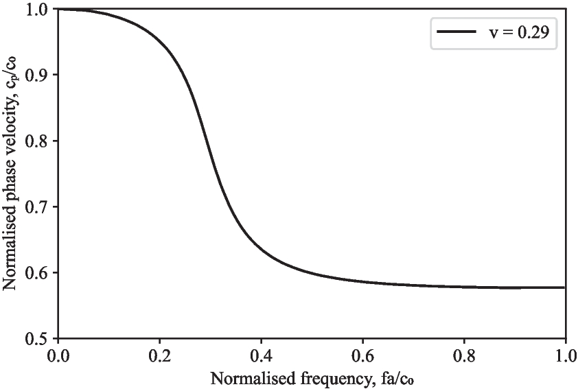 When processing signals from SHPB experiments, it is frequently believed that longitudinal stress waves in the pressure bars travel one-dimensionally at a common velocity \(c_0\), and hence measurements recorded at strain gauges are frequently simply translated to the end of the bar using a suitable time delay [14]. In actuality, stress waves travel at a certain phase velocity, \(c_p\), which is a function of frequency, bar diameter, one-dimensional wave speed and Poisson’s ratio [15], as illustrated in Fig. 5 [3].