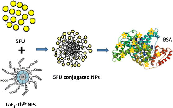 Synthesis of 5-Fluorouracil conjugated LaF3:Tb3+/PEG-COOH nanoparticles and its studies on the interaction with bovine serum albumin: spectroscopic approach