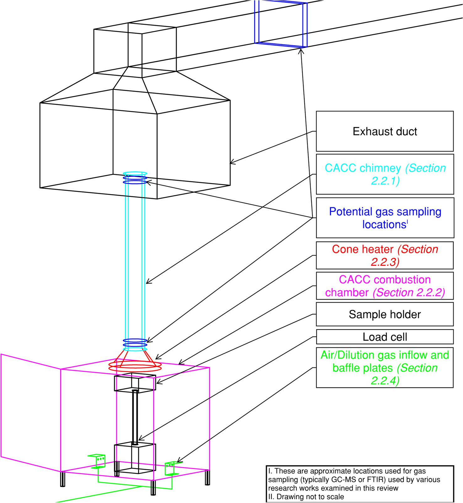 The scope and use of the CACC are varied and, with standardisation only occurring in 2020 [10], are in their infancy. As an adaptation to one of the most widely used methods of collecting experimental data for fire safety engineering, described as a potential basis for more realistic toxicity and smoke obscuration test standards [11, 12], there is a significant value in further review. The purpose of this review will, therefore, be to investigate the literature available on the CACC to characterise some of its key components as well as the limitations in its use. To the authors’ knowledge, there has been no comprehensive study on the CACC apparatus to date.