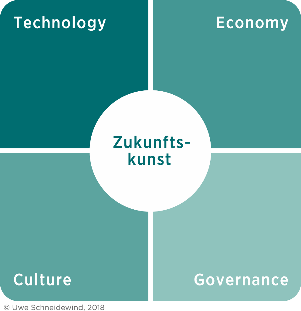 The four dimensions of “Zukunftskunst” as a guideline for shaping the future in the Corona crisis. (Schneidewind and Wuppertal Institute 2018) (The English translation of “Die Große Transformation” will be published at the end of 2020 by the Wuppertal Institut)