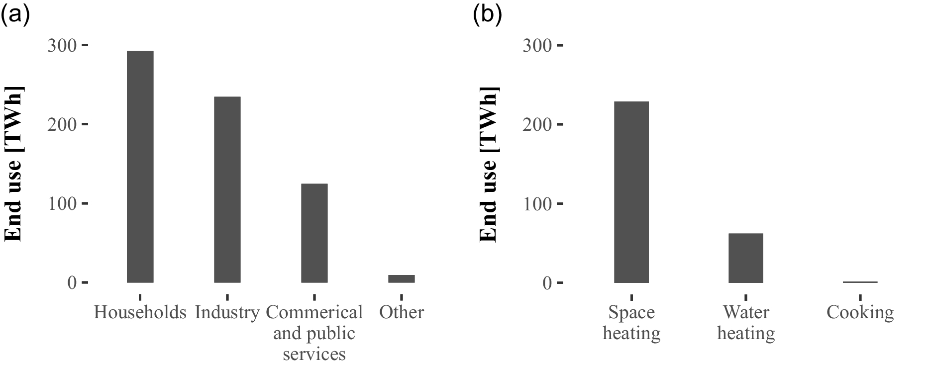 German end use of natural gas in 2021 (Eurostat, 2023a, b)