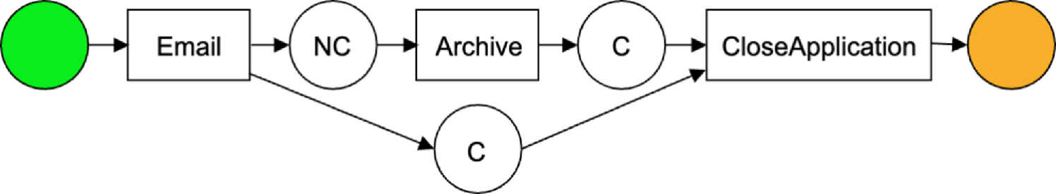 This may erroneously drive us to infer that, for example, if we do not send an email about a given loan acceptance, then, the loan is also not archived, or that if we shorten the execution time of the emailing task (e.g., by allocating more resources to it) then we can complete the archiving task earlier.