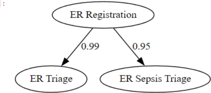 Before running LiNGAM, we checked for distribution conformance. A Shapiro-Wilks test showed that the distribution of the activities ER Sepsis Triage (W = 0.36, p-value <.01) and ER Triage (W = 0.06, p-value <.01) departed significantly from normality, thus allowing the use of DirectLiNGAM.