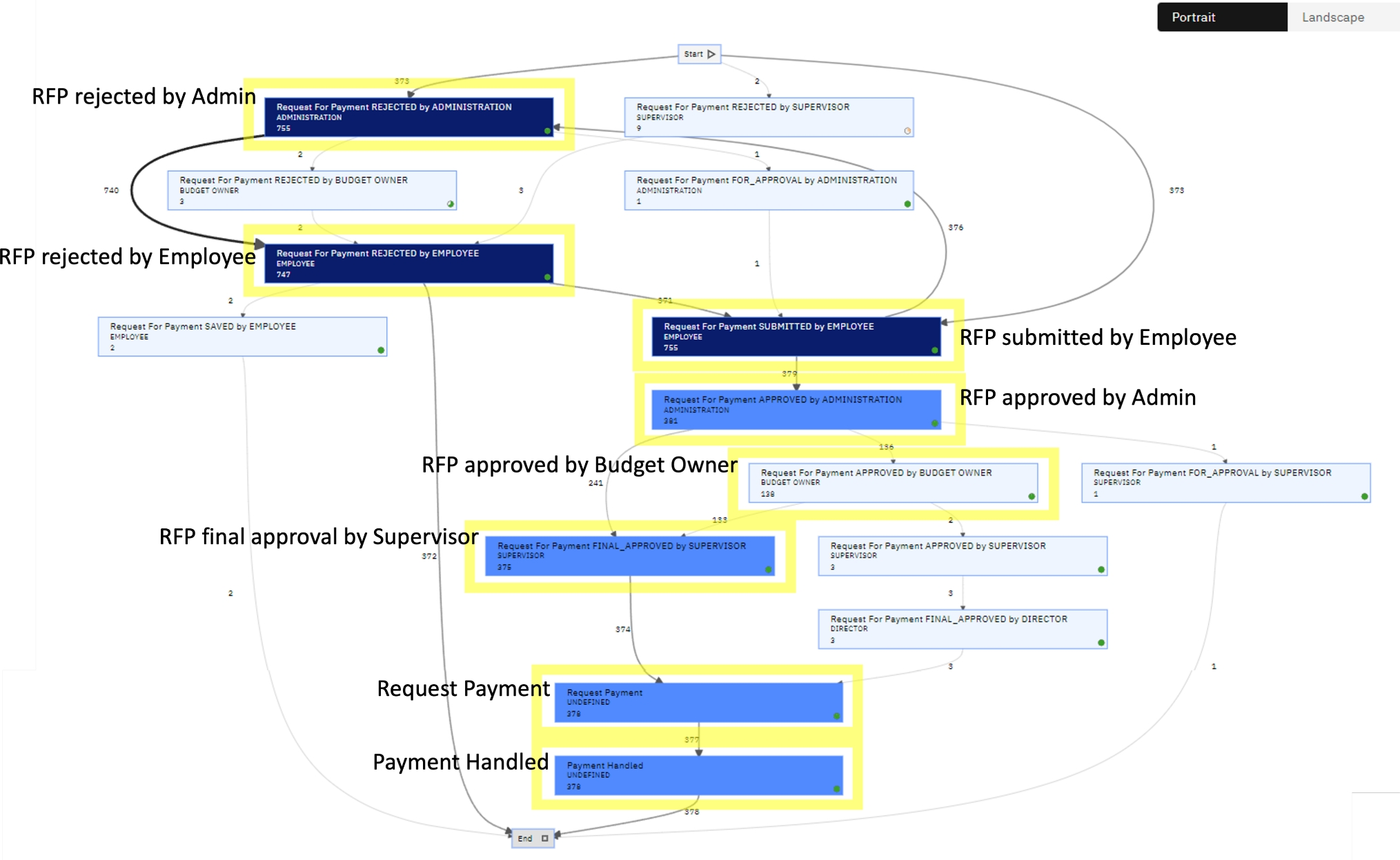 IBM process mining BP model for the Request-for-payment dataset