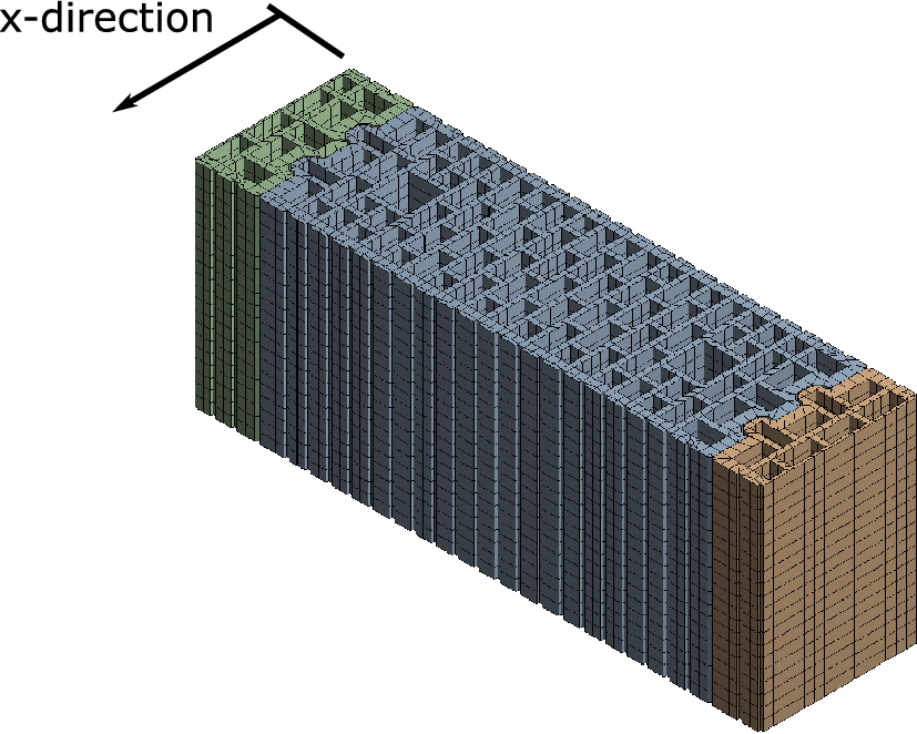 Numerical grid for the simulation of the heat transfer through the brick (shown without mortar)