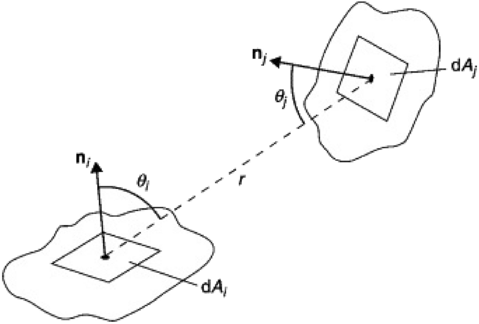 Calculating the view factor between two surfaces \(dA_{i}\) and \(dA_{j}\) in a distance of r [10]