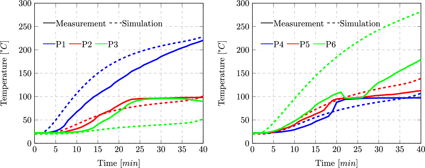 Considering the heat conduction and radiative heat transfer in the voids of the bricks showed good agreement to the validation data from literature. Thus, high accuracy of the thermal model can be assumed for the masonry brick wall.