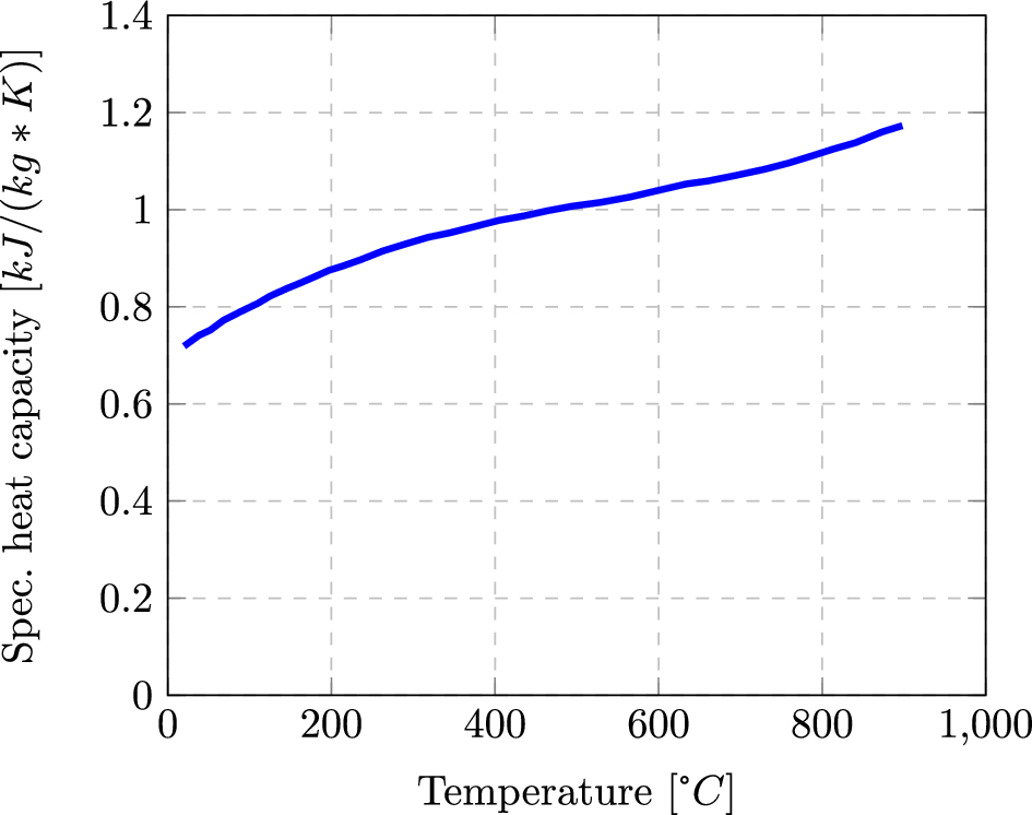 Temperature-dependent specific heat capacity of mineral wool [28]