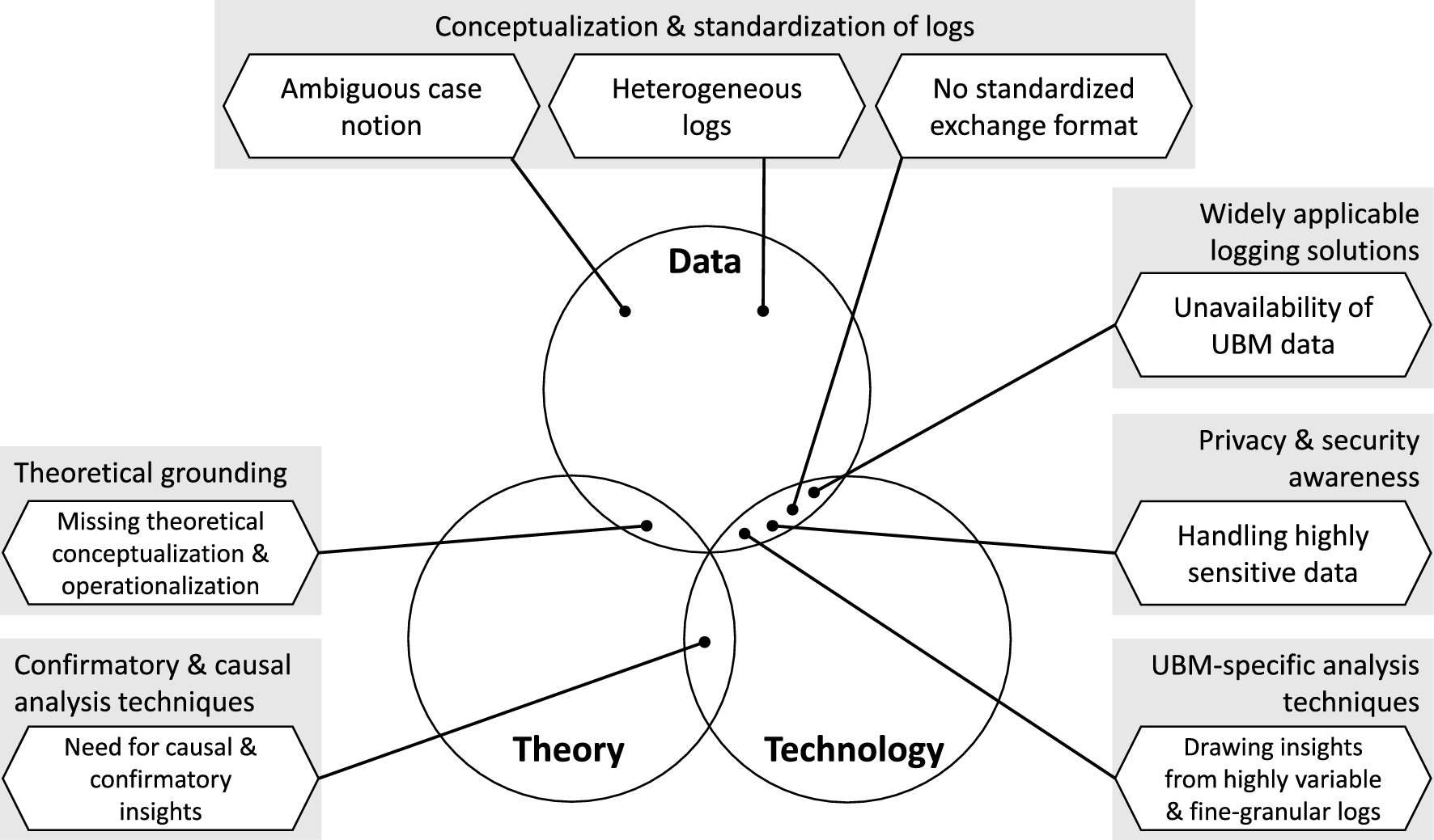 Of the four parts of the UBM framework, UBM theory is the least well understood. This is because not many researchers have so far considered the opportunities that process mining methods provide for IS theorizing. Existing research has established process mining as an analytical method to detect and theorize about changing behavior on an organizational level (Grisold et al. 2020), but not on the individual level that is provided by UI logs. Extending this perspective and positioning UBM as a means to analyze the behavior of individual humans offers tremendous opportunities, but it needs to be systematically understood, studied, and applied for these to come to fruition.