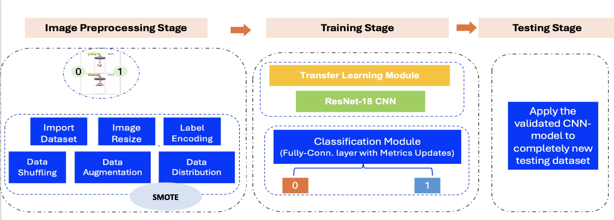 To address the challenge of imbalanced datasets, we employed the Synthetic Minority Over-sampling Technique (SMOTE) (Chawla et al., 2002). SMOTE is a widely used method in machine learning to handle class imbalance by generating synthetic samples for the minority class. Unlike traditional oversampling methods that simply duplicate minority class instances, SMOTE creates new synthetic examples by interpolating between existing minority class samples. This approach helps to balance the dataset and improve the model’s ability to generalize to underrepresented categories. Unlike random oversampling, which duplicates existing data points, SMOTE enhances model generalizability by introducing artificial but realistic minority-class samples, thereby reducing overfitting and improving classification performance.