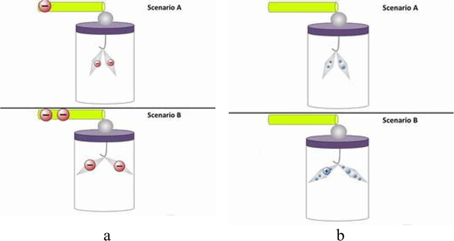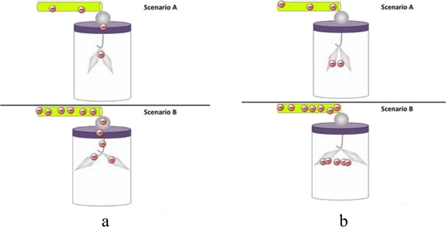 Point Charge on the leaves of the electroscope in scenario A. The charge must be the same type as shown in the rod in scenario A