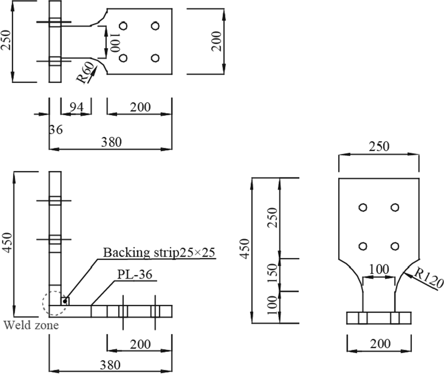 The welding wire is according to JIS (Japanese Industrial Standards) Z3351, and welding flux is according to JIS Z3352. The chemical composition of the base metal (column flange plate), backing strip and weld metal obtained by spectroscopic analysis of samples cut from the box column are shown in Table 3. The chemical composition of the flux is shown in Table 4.