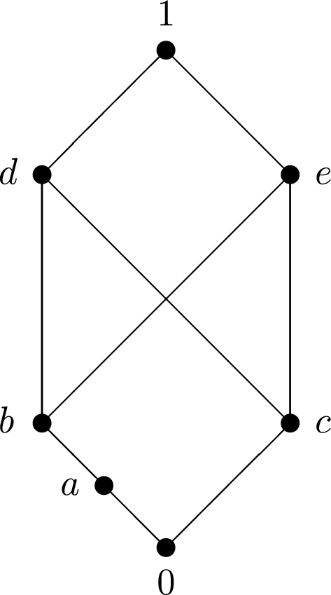 Ideals of \({\textbf{P}}\) are (0], (a], (b], (c], (d], (e] and (1],