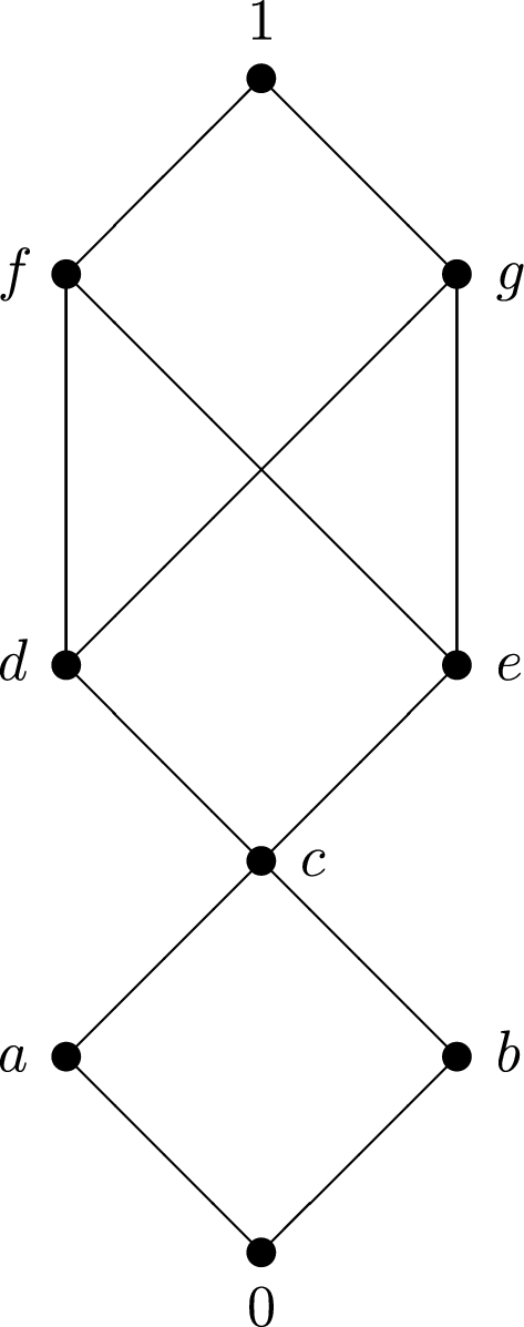 is not a lattice. Since P is finite, every ideal and every filter of \({\textbf{P}}\) is principal. We have: