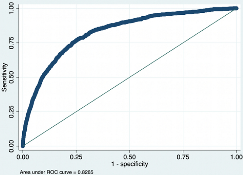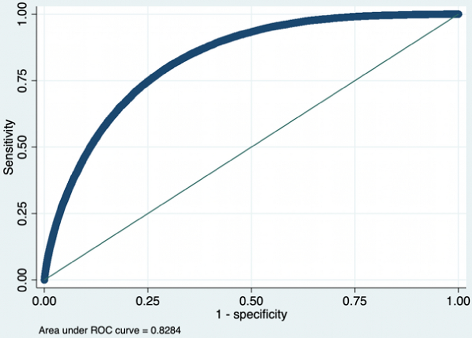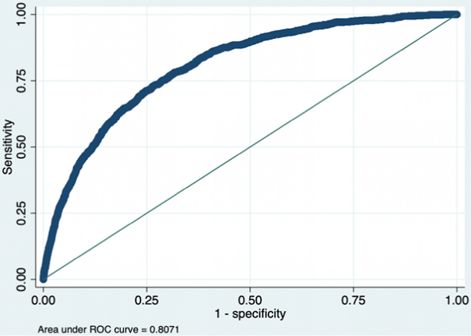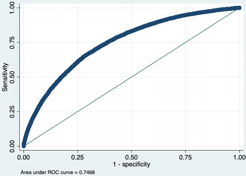 Originally from signal detection theory, the receiver operating characteristic (ROC) curve plots the true positive rate (sensitivity) against the false positive rate (1-specificity) as the threshold to discriminate between the changes of failed and non-failed firms. The area under the ROC curve (AUROC) provides a better, more comprehensive explanation of classification accuracy. An AUROC of 0.5 would mean that the model has no discrimination, while 1 would imply perfect model prediction performance. In general, performance is considered acceptable when the score is between 0.7 and 0.8, whereas excellent discrimination exists if the score is no less than 0.8 (Altman et al. 2010; Hosmer Jr et al. 2013).