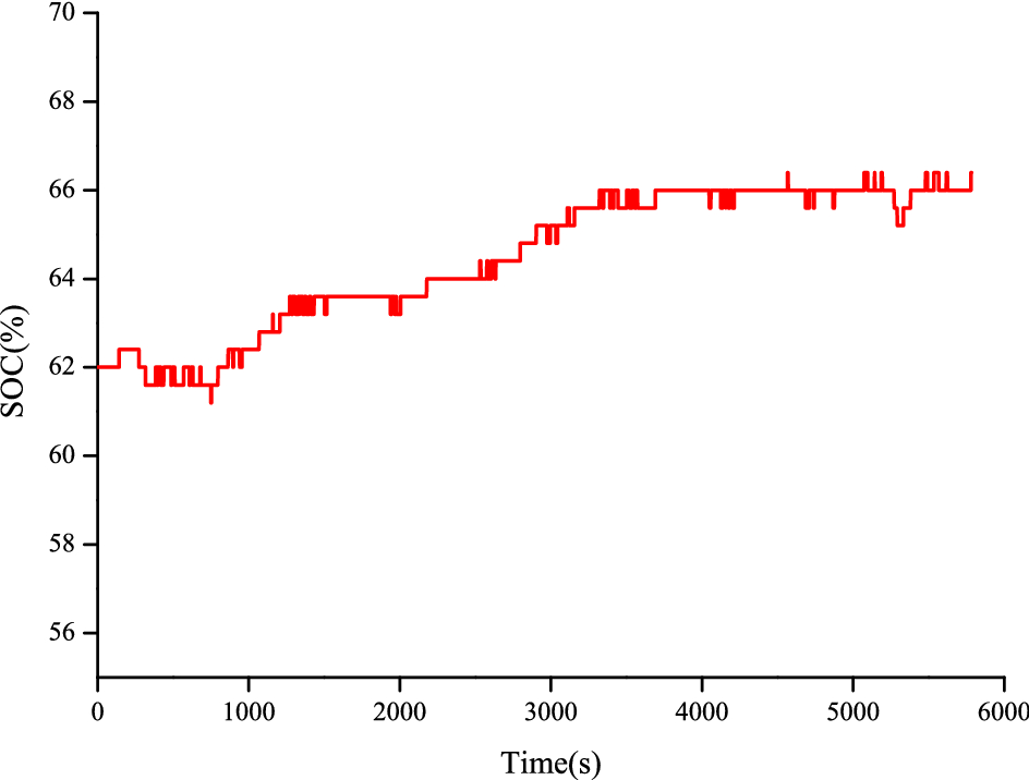 High SOC mode: The battery is fully charged and can be made to work at its best discharge efficiency point, with SOC gradually reduced to a reasonable operating range and the fuel cell system working at a low output power to reduce hydrogen consumption.