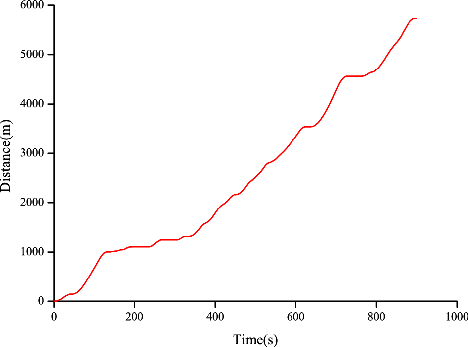 In light of C-WTVC urban driving cycle, the stepped control strategy of the SOC (Strategy I), the half-power prediction control strategy (Strategy II), and the power-following control strategy (Strategy III) were conducted to make simulation of the economy of the vehicle. The vehicle velocity in the cycle is shown in Fig. 5, and the vehicle miles traveled are shown in Fig. 6, with a total mileage of 5.7 km. The simulation data and energy flow diagrams of the C-WTVC driving cycle are shown in Table 3 and Figs. 7, 8 and 9, respectively.