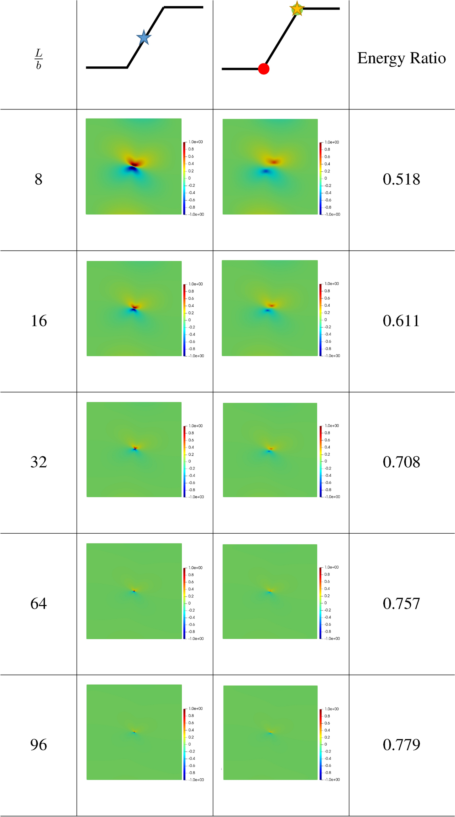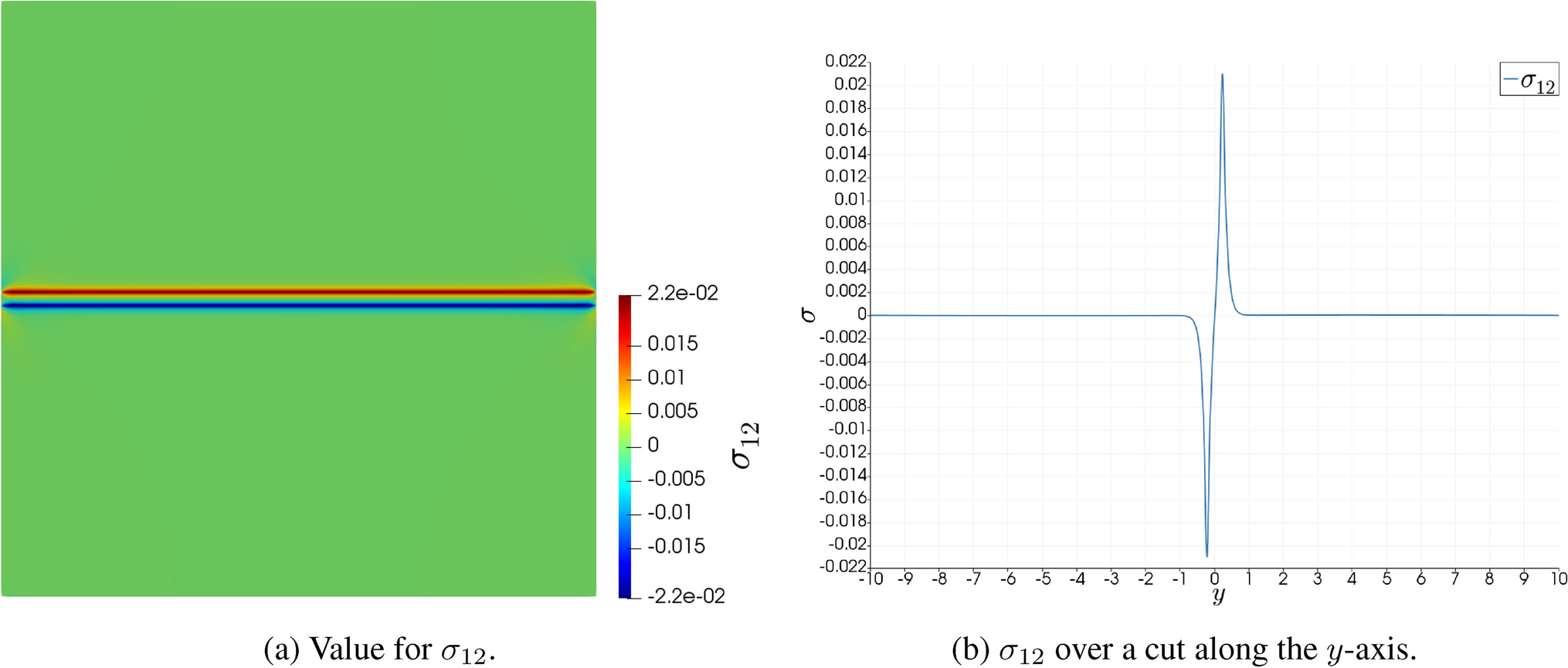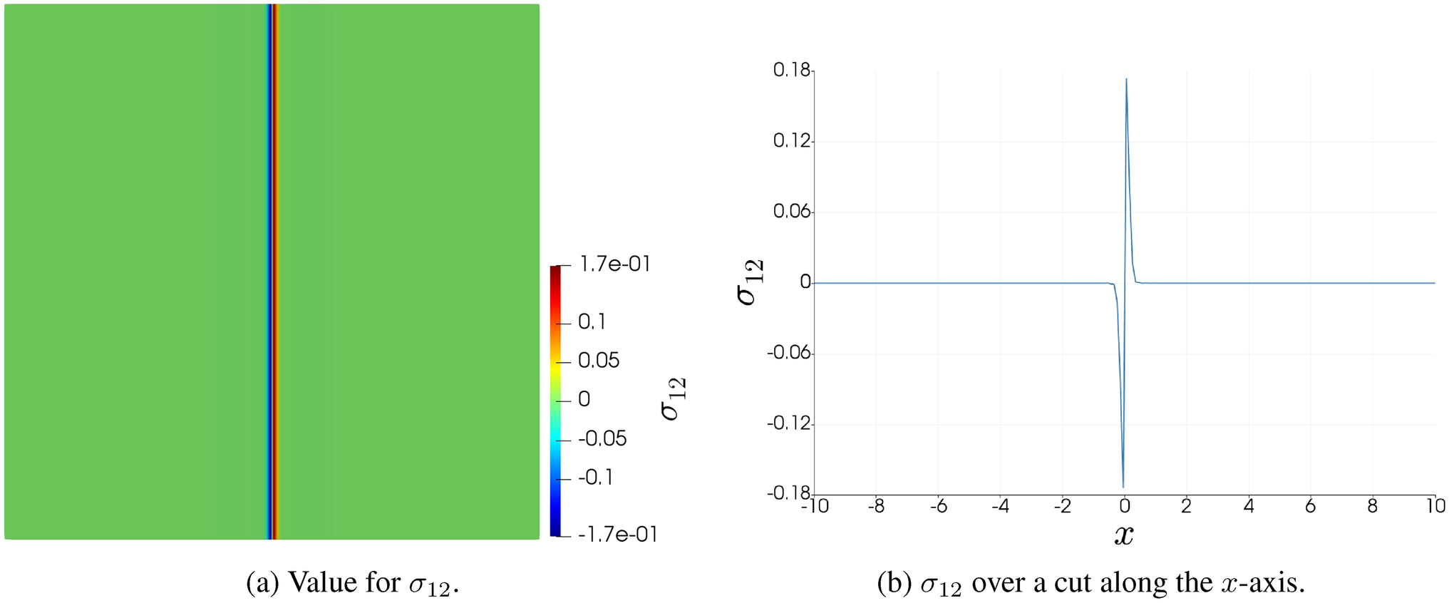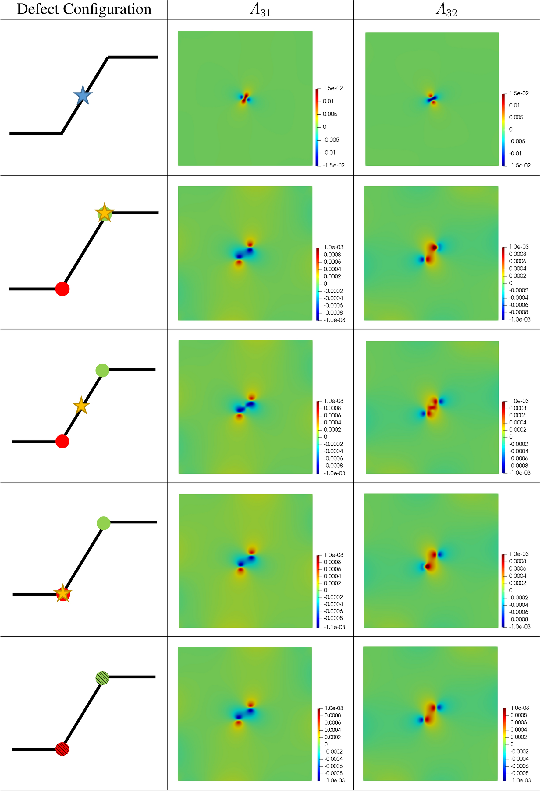 The stress for this case is shown in Fig. 6. As can be seen, both pictures are almost indistinguishable, while, with the exception of the vicinity of the defect core, the difference between both field, in the sense of (1.1), is noticeably smaller than \(5\%\). Due to the current framework considering finite-size cores and the analytically solution considering an infinitesimal one, the difference in the vicinity of the core is, expectedly, large.