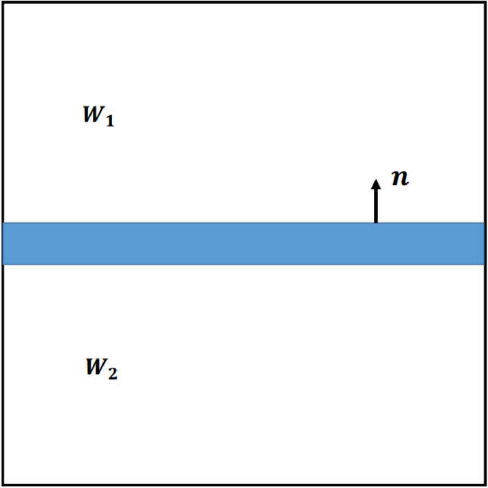 where a is any area patch with closed boundary contour c. The physical interpretation of this definition for \(\varvec{\varPi }\) is a density of lines threading area a and carrying a tensorial attribute reflecting a jump in \({\varvec{W}}\) across the layer L. The dislocation density is defined as