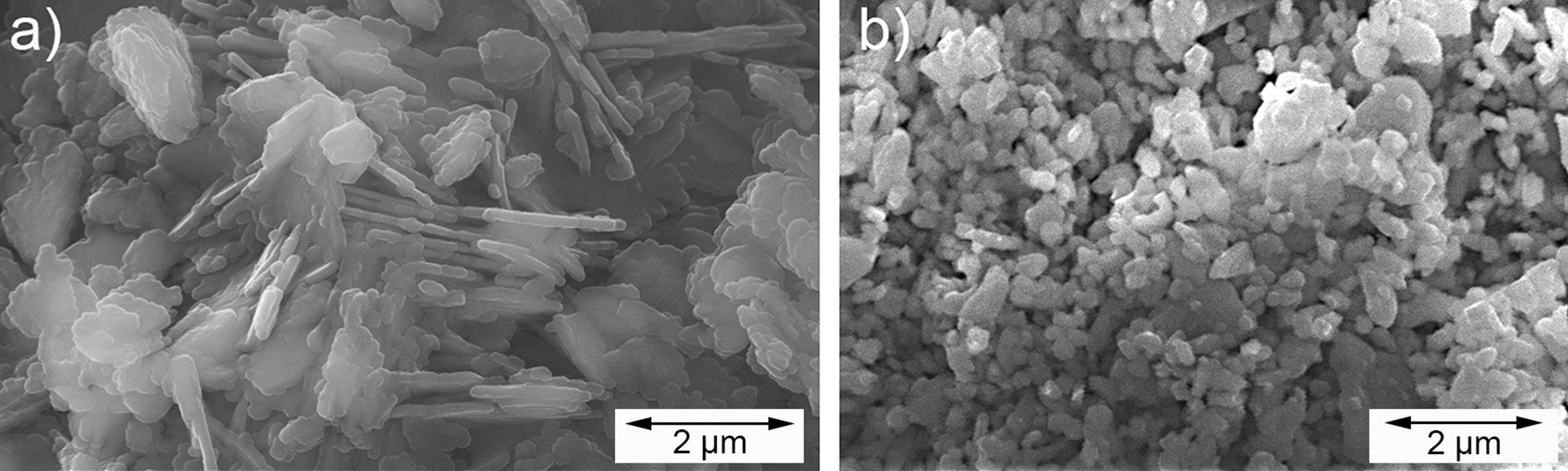 SEM images of the Al2O3 nano powders (a) Al2O3 nanosheets and (b) Al2O3 nanopowder