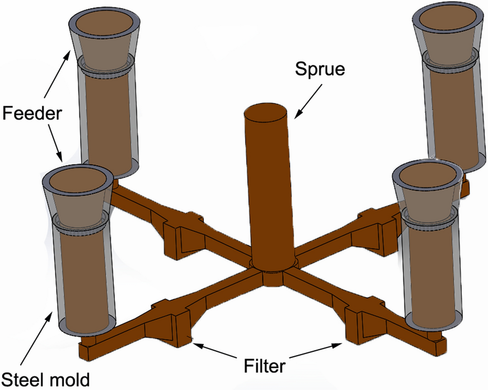 The short-term filtration trials were conducted at the metal foundry of Georg Herrmann Metallgiesserei GmbH (Germany) with AlSi7Mg (EN AC-42100) from Rheinfelden Alloys (Germany).