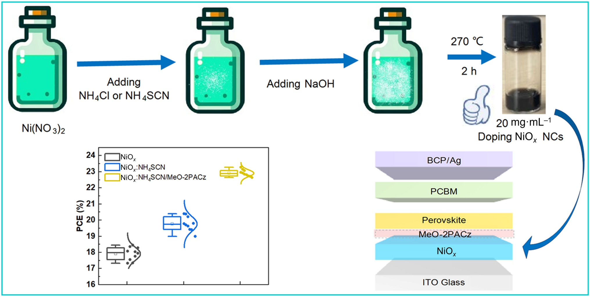 Inorganic ammonium salt doping in nickel oxide for highly efficient planar perovskite solar cells