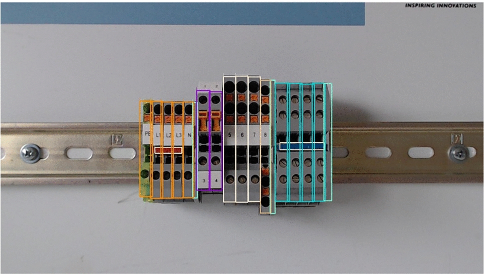 In this paper, we assess the particularly challenging object detection of terminal strips using 3D models by Phoenix Contact that are publicly available on the company’s homepage.1 The investigation is motivated by two applications: identification of already mounted terminal blocks in electrical cabinets and quality control in terminal strip assemblies. The first application is relevant, as the product information is printed on the side of the terminal blocks and occluded by neighboring components in a mounted state. Thus, experts must identify certain terminal blocks to avoid demounting. The second application of quality control stems from the fact that the product portfolio for terminal strips is manifold, including over 10,000 components. This causes manual work steps during terminal strip assembly. Since manual processes are prone to human error and experts are not always available, a ML-based detection system would prevent errors and save time in both cases.