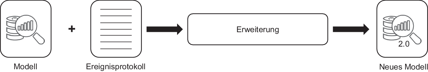 Das Prinzip der Prozessverbesserung ist in Abb. 4 veranschaulicht. Als Eingangsgrößen dienen wieder ein normatives Modell sowie das Ereignislog. Die Ausgabe ist ein neues und optimiertes bzw. aussagekräftigeres Modell des zugrunde liegenden Prozessablaufs. Das neue Modell liefert dem Unternehmen wertvolle Informationen, wodurch die Effizienz des Unternehmens gesteigert werden kann [1].