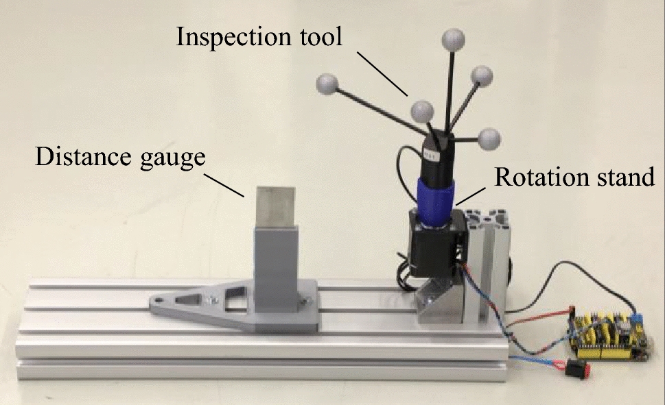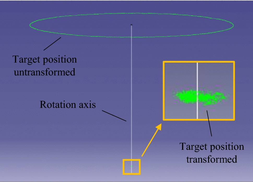 The tool calibration process, described in Chapter 4.6, is realised by measuring the 3D scanned geometry of the inspection tool. A test procedure to verify the calibration parameters is limited by the used marker-based tracking system accuracy. Nevertheless, it could be proven that the point cloud of the calibrated inspection tool covers a cylindric volume of about \(0.23\,\textrm{mm}\) radius and \(0.29\,\textrm{mm}\) height.