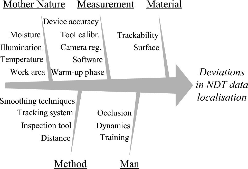 Ishikawa diagram of causes for deviations in NDT data localisation