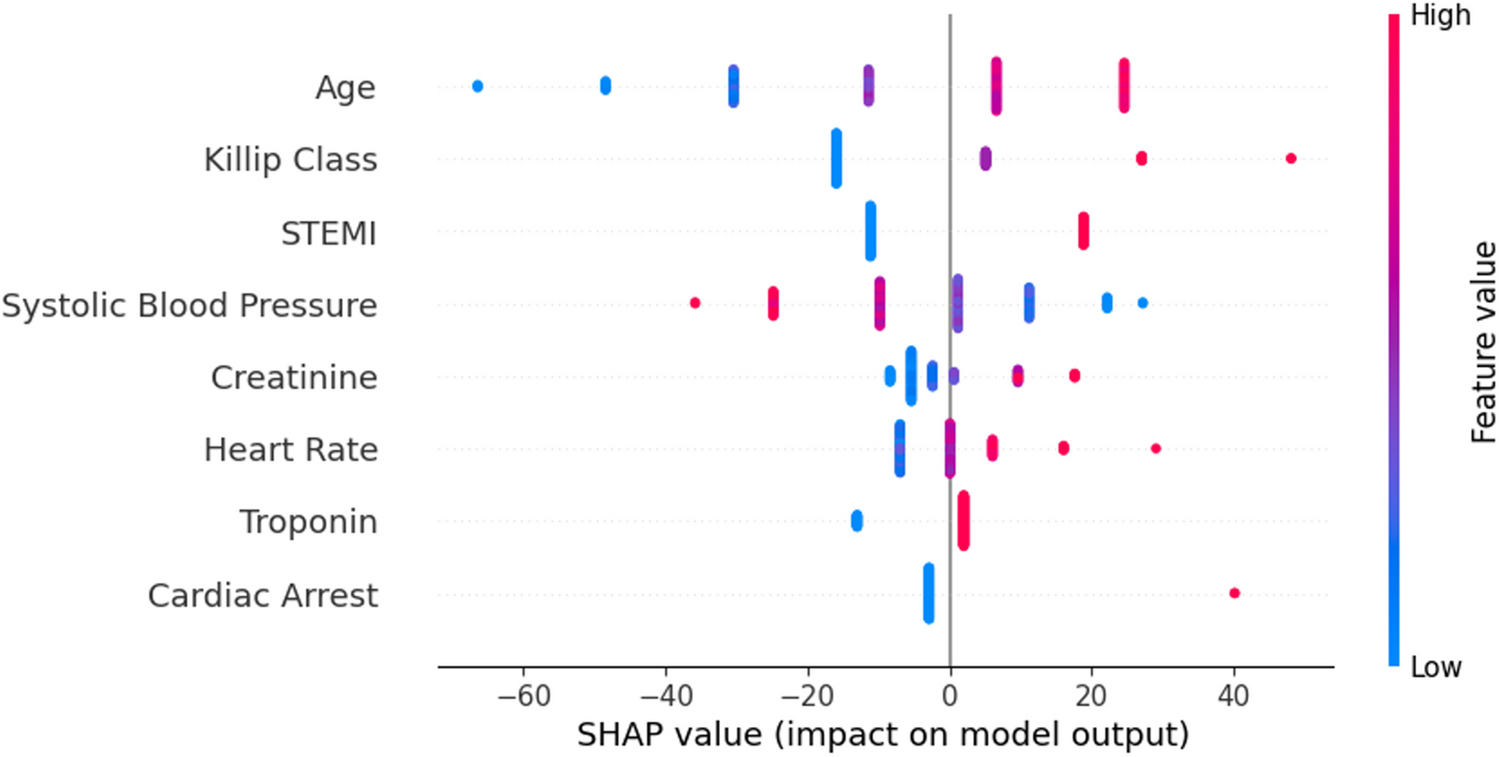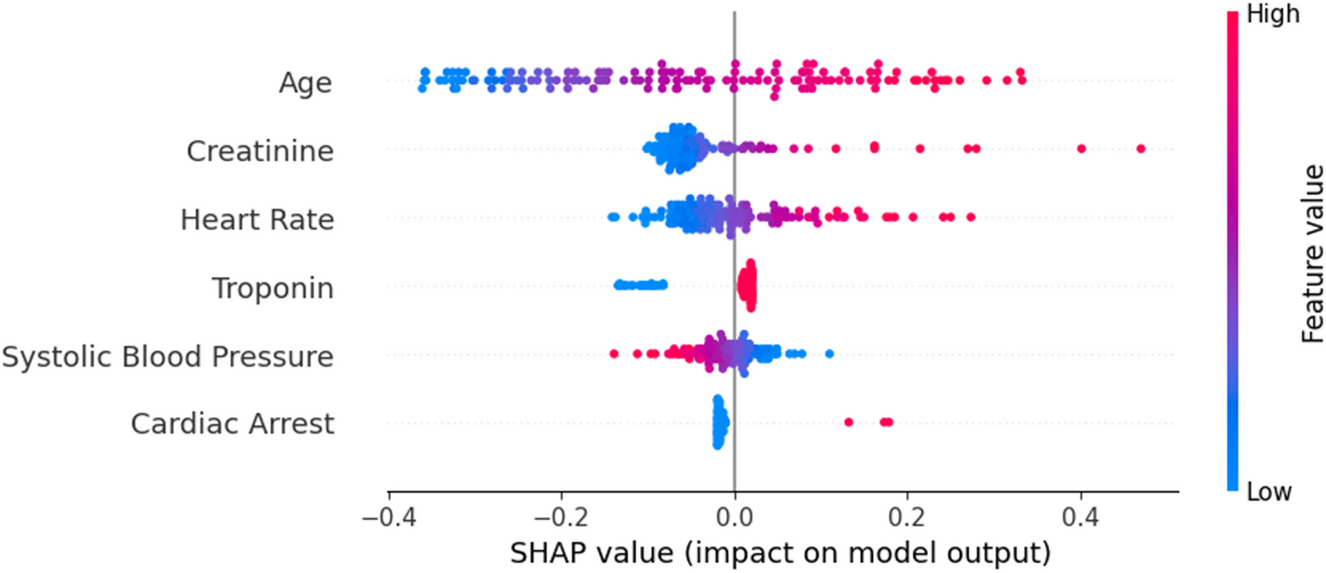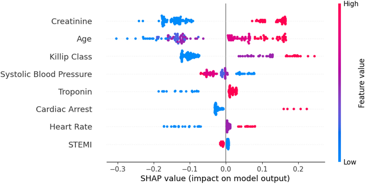 The proposed assessment is validated through the comparison between some ML models (white-box models) and GRACE score (clinical reference).