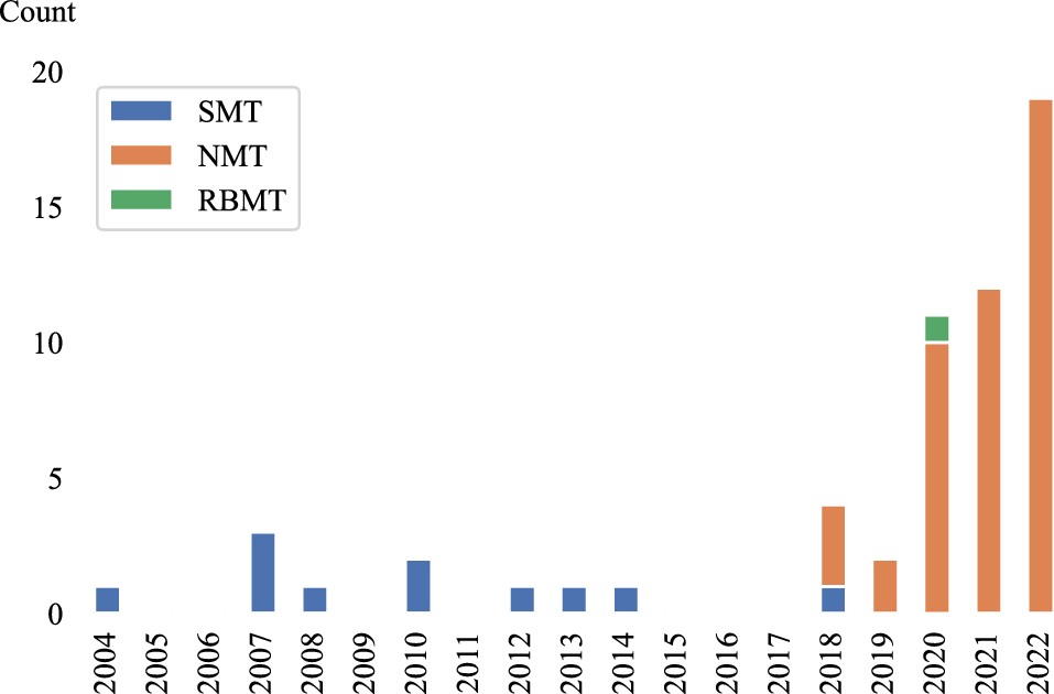 The domain of spoken language MT is extensive and the current SOTA of NMT builds upon years of research. To provide a complete overview of spoken language MT is out of scope for this article. For a more in depth overview of the domain, we refer readers to the work of Stahlberg [49].