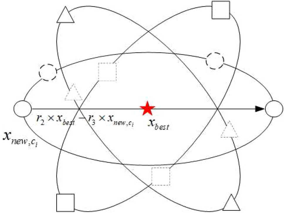 $$\begin{aligned}&x_i^d(t + 1) = x_i^d(t) + S \times [{r_2} \times x_{\text {best}}^d(t) - {r_3} \times x_i^d(t)]\nonumber \\&\quad i = 1,2, \ldots \ldots N, \end{aligned}$$