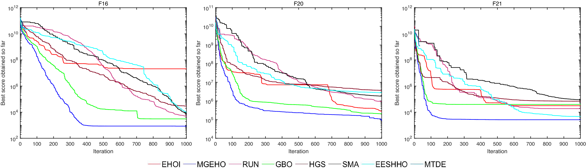 The performance of the proposed MGEHO is also evaluated and compared with selected advanced algorithms by using 32 modern CEC2014 and CEC2017 benchmark functions. Statistical tests are invoked to analyze the results of means and standard deviations. The Holm test is used as a post hoc test. In addition, the running time analysis is conducted to highlight the fundamental differences between the proposed and existing methods.