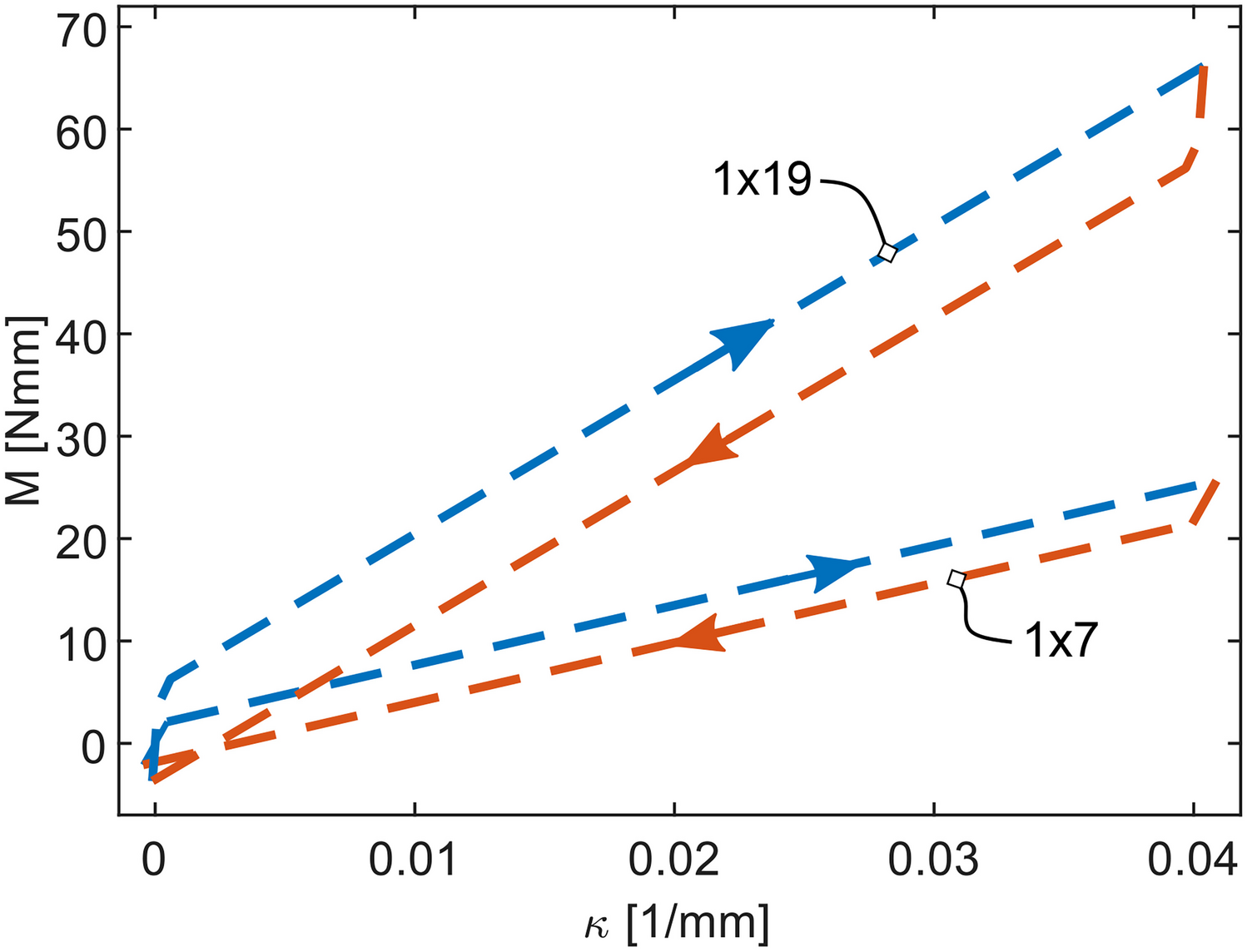 Using these, one can build a hysteretic bending moment-curvature characteristic for the wire. The envelope area will give the tension loss as stated in (32):