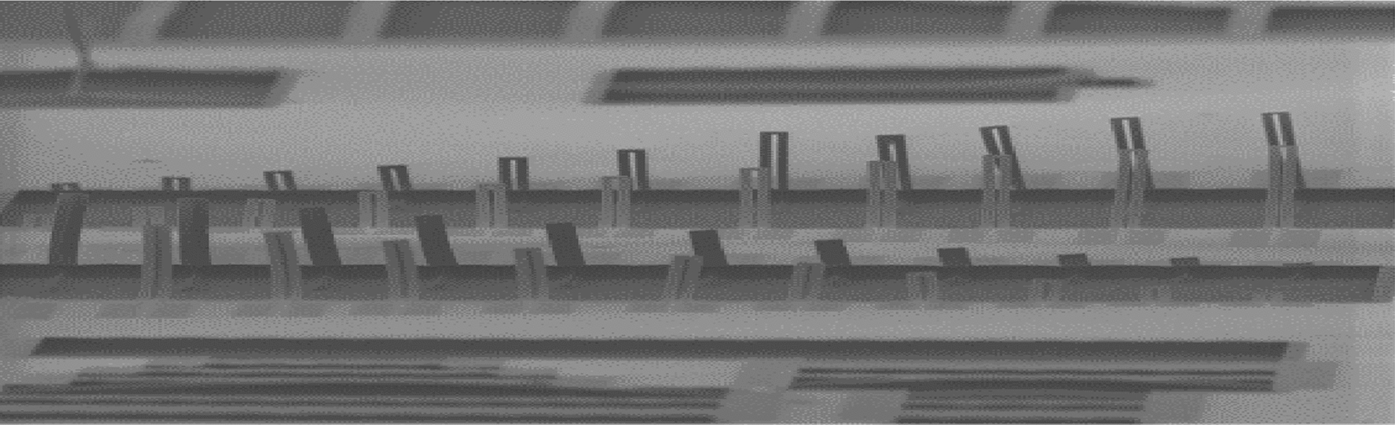 Chips (2 \(\times \) 2 cm\(^{2}\)) of silicon-based cantilevers (so-called single-clamped beams) have been designed. As shown in Fig. 1a, we consider U-shaped HTPC of 50 \( \upmu \)m in width (\(\text {W}_\textrm{a}\)), with a slit (\(\text {W}_\textrm{b}\)) of 10 \(\upmu \)m width at the tip of the cantilever. As illustrated in Fig. 1b, to optimize the U-shaped HTPC design with respect to the stability of the resonant frequency and vibratory motion, we fabricated different lengths of the cantilever (L). Figure 2 shows the fabricated chip of the U-shaped HTPC, with different lengths ranging from 232 μm to 306 μm. As shown in Fig. 1, the top and bottom electrodes were sputtered from titanium and platinum layers (Ti/Pt) with a thickness of 10/100 nm in a physical vapor deposition (PVD) system (Plassys MP 500). In this work, our designed cantilever was based on TiPt/AlN/TiPt stacked layers, which were fabricated on a 500-\( \pm \) 25-μm-thick, 4-inch, <100>-oriented undoped silicon wafer (Si). Three UV photolithography processes were performed. The first and third processes were for metal layer deposition, and the second process was used to deposit the 1-μm-thick AlN layer using a PVD sputtering machine. Wet etching of the AlN thin film deposited by sputtering was preferred due to the very low etch rate achieved by dry etching processes.1,33‐35 As presented in Table I, both tetramethylammonium hydroxide (TMAH) and phosphoric acid (H\( _{3} \)PO\( _{4} \)) exhibit high AlN etch rates, which are particularly favorable for efficient material removal. These etch rates are considered interesting because they allow faster processing times compared to other methods while maintaining low anisotropy ratios. For the patterning of AlN, we selected an H\( _{3} \)PO\( _{4} \) etching solution at 120 \( ^\circ \)C as it offers high selectivity against Si and ensures that the underlying silicon substrate remains unaffected during the etching process. Then, the pattern of Ti/Pt/AlN was transferred directly to the silicon wafer, facilitating etch openings for the sacrificial layer. The U-shaped HTPC was released by isotropic etching of Si using pure \(\text {SF}_{6} ,\)36,37 as shown in Fig. 1b, and was investigated by scanning electron microscopy (SEM), as shown in Fig. 2.