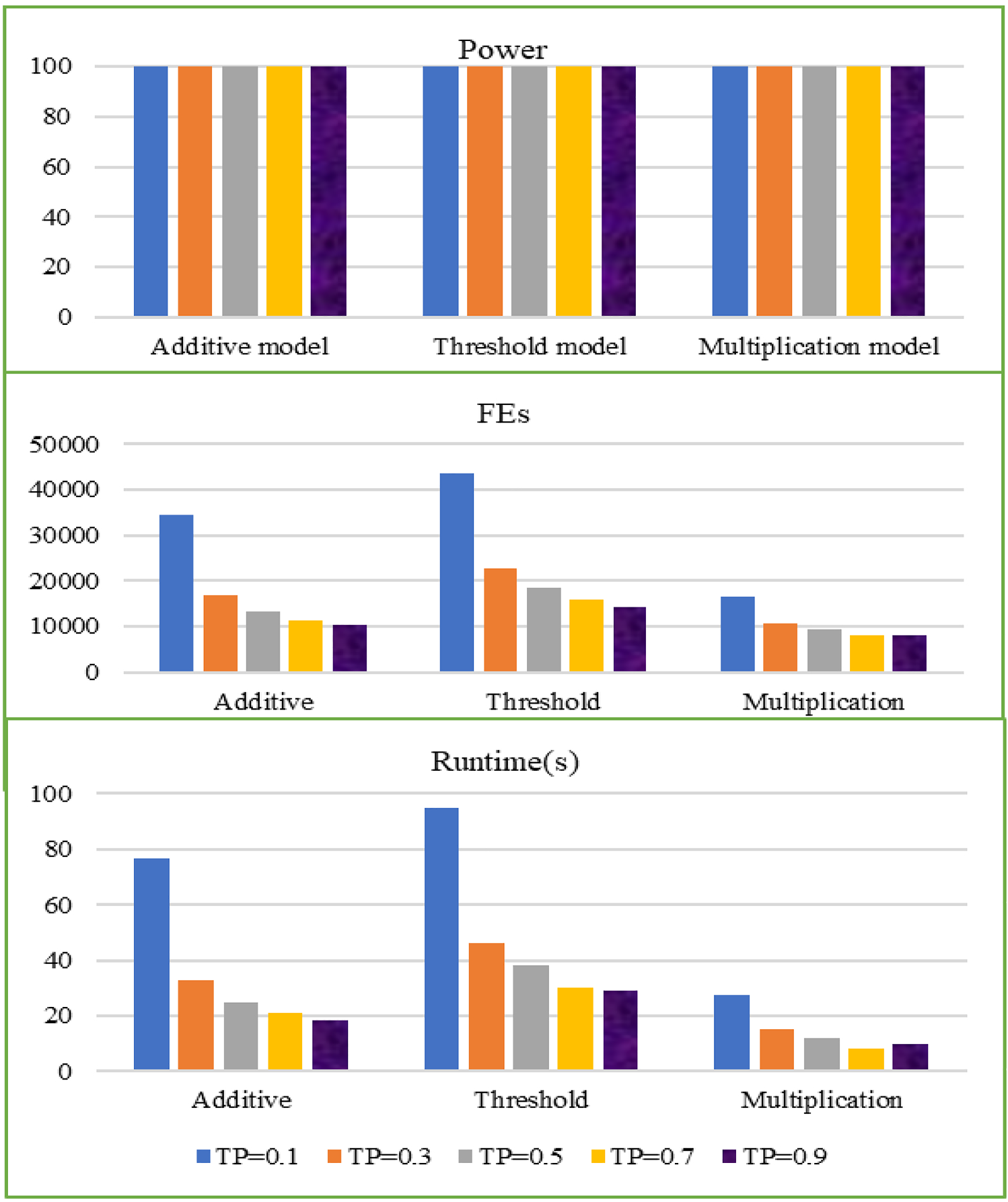 Note that in this work, power is used mainly to evaluate the search ability of the proposed method. If the disease-causing SNP combination (epistatic interaction) has been found within the specified iterations (maximum number of objective functions evaluated, maxFEs), the search is considered successful.