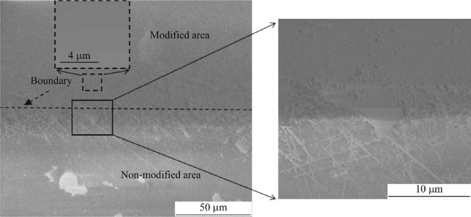 By combining the characterization results of TEM and XPS, it can be proved that the modified layer was formed by converting oxides into hydroxides, and the thickness of the modified layer was 65 nm.