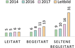Entwicklung der Artenzahlen in den Jahren 2014, 2016 und 2017 und Vergleich zum Leitbild