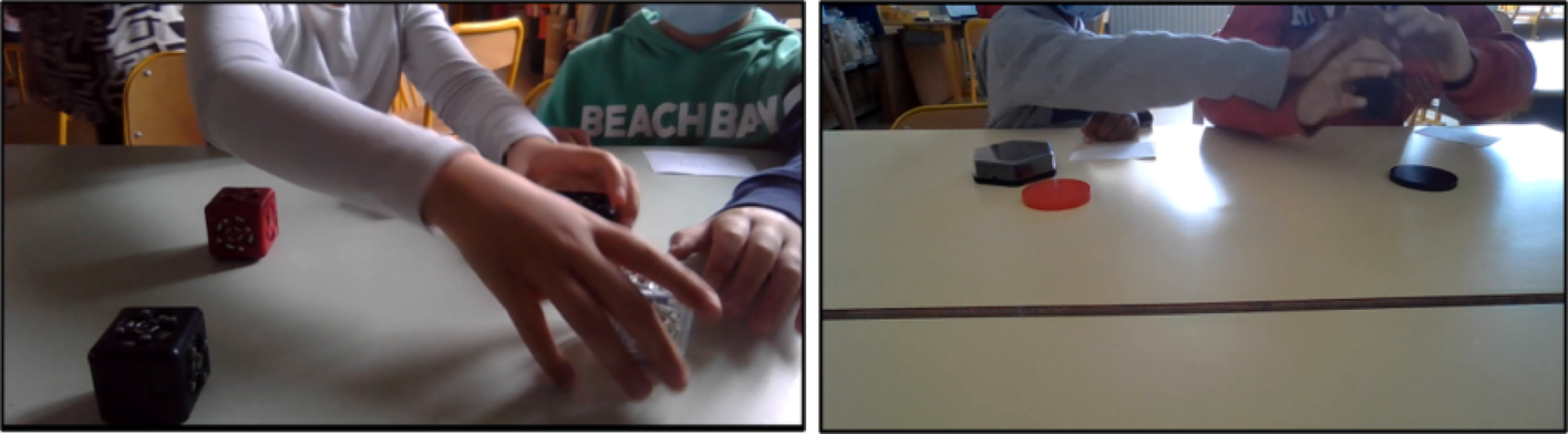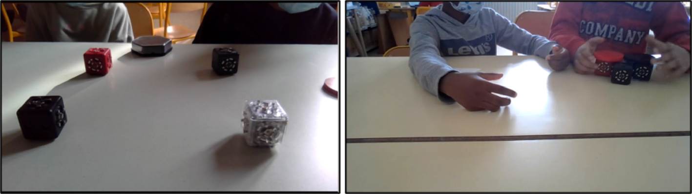 This study was conducted within the specific French educational context, which is relevant to understanding the approach to problem-solving. Recent data from the Trends in International Mathematics and Science Study (TIMSS) indicates that French students’ math performance is below the European average. Only 3% of French students reached an advanced level in mathematics, compared to an 11% international average. In response to these findings, there’s a growing push in France to explore alternative pedagogical methods for teaching mathematical procedures, with a particular focus on problem-solving through the use of tangible artifacts. In this context, our study aims to evaluate CPS through a modular robotic task. A sample of 12 primary school pupils (8 males, 4 females), aged 7 to 8, from a primary school in Nice, France, participated in the study. Pairs of students were formed based on a random assignment of pupils from a single class. This process resulted in two mixed-gender pairs and four same-gender pairs. To control the prior level, we identified that any of the participants had engaged priorly in the use of modular robotics. The study was approved by the ethical committee of Université Côte d’Azur (CER2019-6), and the parents signed for the consent of the children engaged in the study.