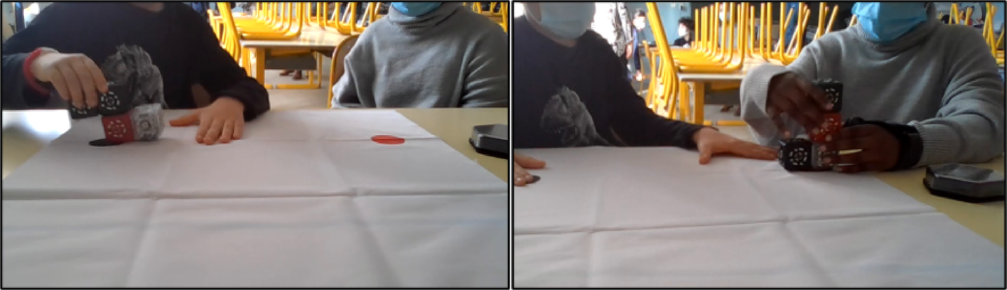 In order to support students’ development of CPS through educational robotics activities, we need to understand the interaction through cooperative activities as a process (Pásztor-Kovács et al., 2023). For this objective, we examine students’ interactions in a CPS activity with educational robotics. Students’ interaction includes the manipulation of the robots, their emerging roles, and their verbal exchanges. In this paper, we closely examine students’ interactions in a CPS activity. We analyse the CPS process through the learners’ manipulations, emerging collaborative roles, and problems throughout their interaction.