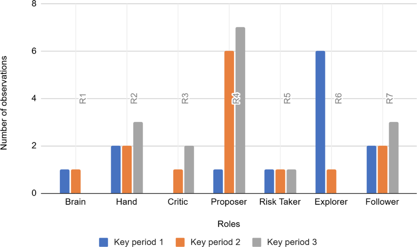 Table 3 presents the results of the participants’ roles in key time periods 1, 2, and 3 in more detail for each pair.