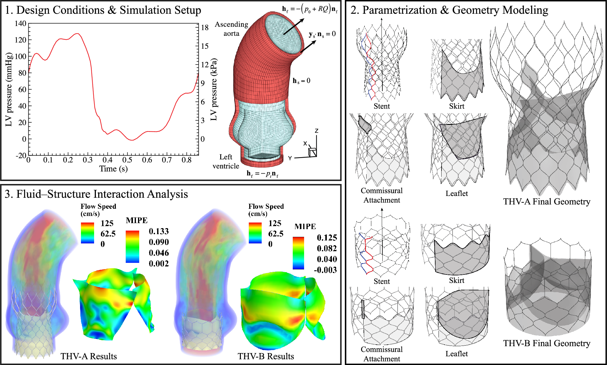 In this section, we summarize the main components of the immersogeometric FSI framework for modeling the THV system. For this model, the FSI problem includes the blood flow, the arterial wall, and the various components of the THV. For more detailed mathematical and implementation details, readers are referred to Wu et al. [25].