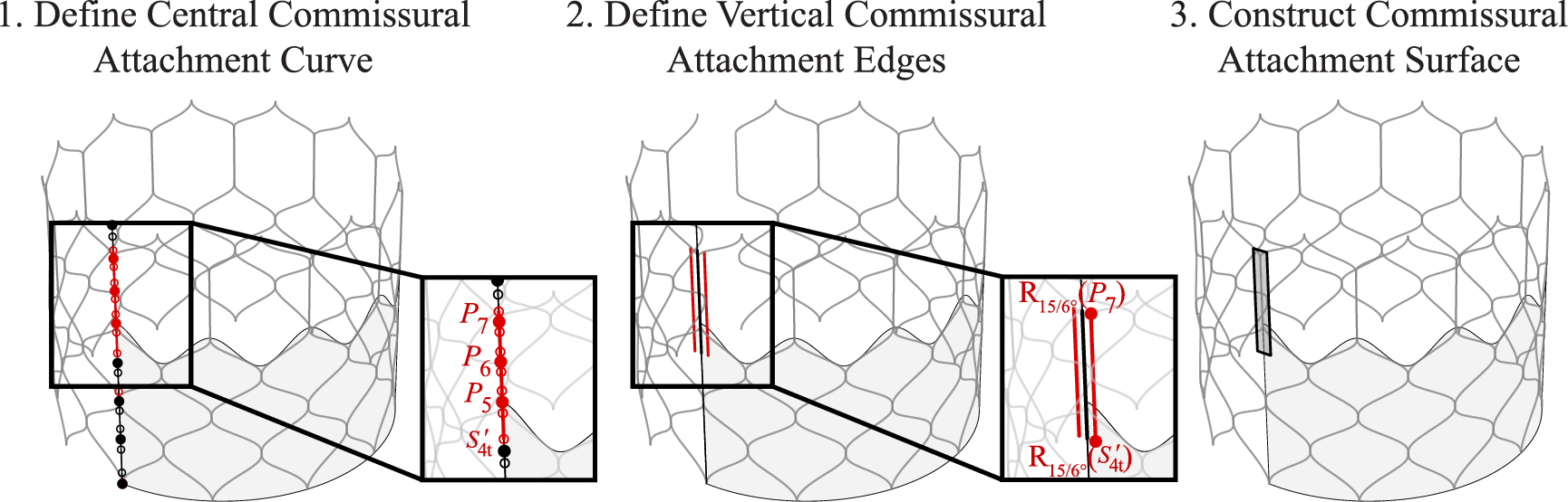 Parameters and construction procedure for the THV-A commissural attachments based on the proposed algorithmic modeling approach