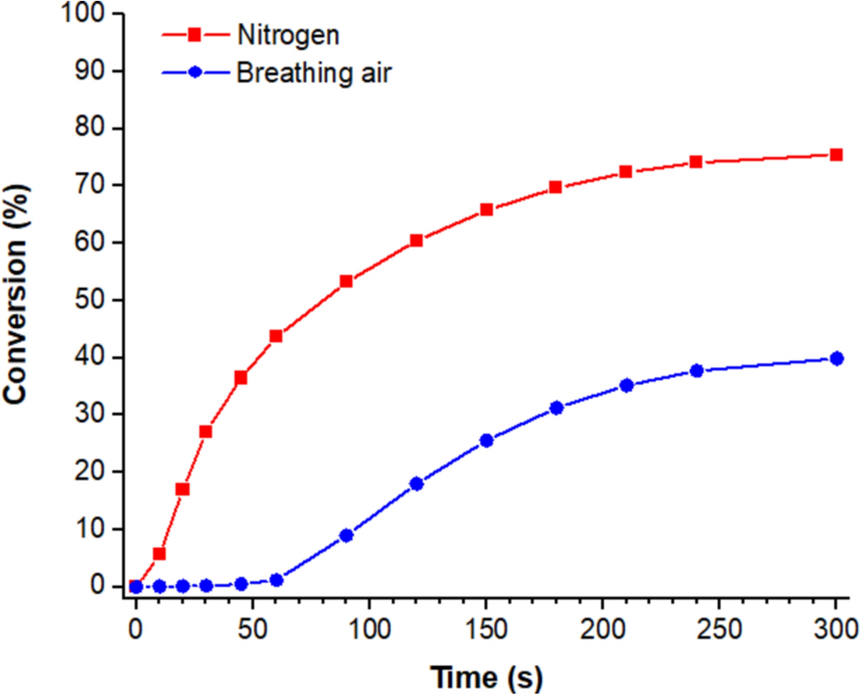 Bolon, DA, Webb, KK, “Barrier Coats Versus Inert Atmospheres. The Elimination of Oxygen Inhibition in Free-Radical Polymerizations.” J. Appl. Polym. Sci., 22 2543–2551 (1978)CrossRef